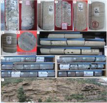 鄂尔多斯盆地北部杭锦旗地区东胜气田锦77井区下石盒子组盒1段岩相特征a.锦77井,深度2 702.5 m, 灰白色砂砾岩,河道滞留沉积; b.锦77井,深度2 678.6 m,灰白色砂砾岩、砂岩,冲刷面构造,界面上为灰白色砂砾岩,石英砾、岩屑砾、泥砾,最大砾径60 mm,底部为深灰色泥岩;c.锦76井,深度2 729.3 m,粗砂岩,冲刷面;d.锦77井,深度2 707.5 m,含砾粗砂岩,槽状交错层理;e.锦77井,深度2 709.4 m,粗砂岩,块状层理;f.锦76井,深度2 726.7 m,灰白色中砂岩,夹灰色泥质条带呈斜层理;g.锦76井,深度2 726.4 m, 中-细砂岩,夹粉砂质泥岩条带,平行层理; h.锦77井,深度2 683.5 m,灰色泥岩,断面含植物化石印痕;i.锦77井, 深度2 710.3 ~ 2 713.0 m,辫状河道非典型二元结构,下部河床沉积厚度远大于上部堤岸、河漫滩; j,k.锦77井,深度2 698.5 ~ 2 704.4 m,辫状河沉积由砂砾岩,含砾粗砂岩和中-细砂岩组成的向上变细的米级旋回特征明显; l. 盒1段河道心滩砂体多期叠置特征,山西保德保德扒楼沟剖面(a—k为岩心照片;l为野外剖面照片,其中黄色虚线为岩层界面。所有岩心直径均为10 cm。)"