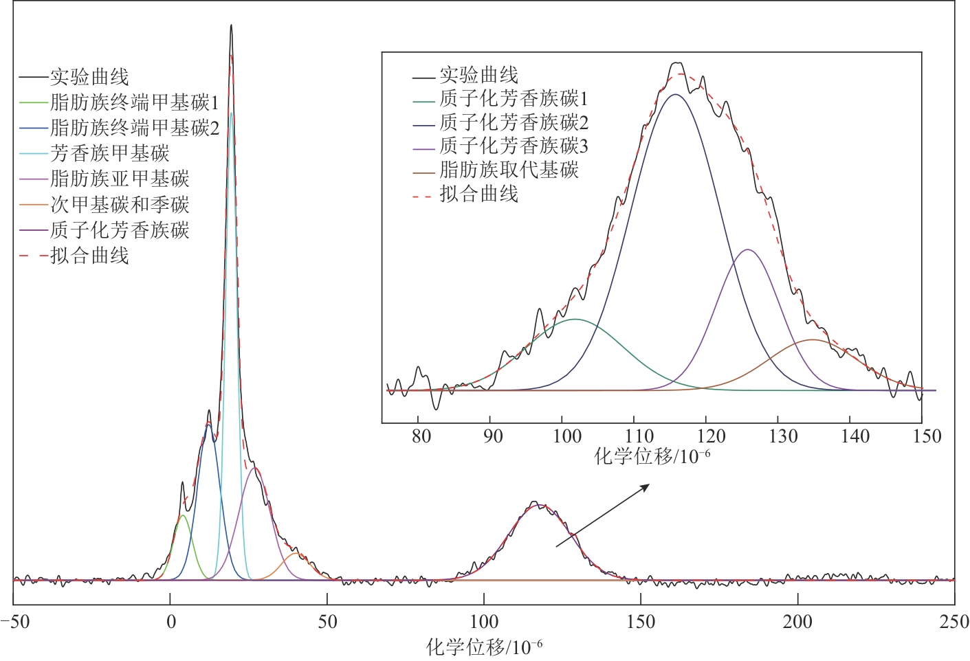 | 碳原子类型 | 化学位移/10-6 | 归属 | 表达式 | 符号 | 相对含量/% |